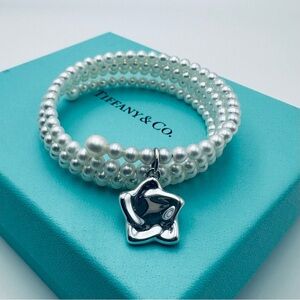 Tiffany & Co. Peretti Multi Row Star Charm Pearl Wrap Bracelet Silver Packaging