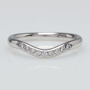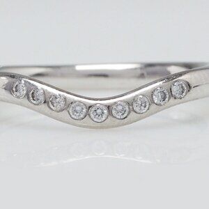 This Tiffany & Co. Diamond and Platinum Elsa Peretti Wedding band Ring is a timeless classic that wraps your finger in classic and elegant style. It features solid 950 Platinum with nine sparkling round diamonds that have a cttw of .06 on a slightly curved band. This modern classic looks great when worn with jeans, evening dresses, and everything in between. Retail price is $1885.