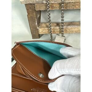 The Tiffany & Co Pochette Wallet Wristlet Crossbody with Chain is a stylish and luxurious accessory designed for women. Made of brown leather with a turn lock closure, this mini crossbody bag exudes elegance and sophistication. The chain strap adds a touch of versatility, allowing the wallet to be worn as a wristlet or crossbody. Perfect for everyday use or special occasions, this Tiffany & Co accessory is a must-have for fashion-forward women.