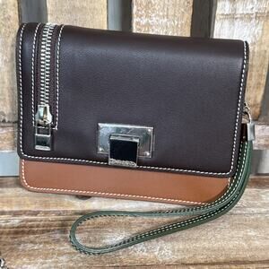 Includes the forest green strap for the wristlet, which is reversible for sides, the chain to make it a crossbody.