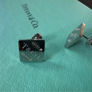 Tiffany & Co Return Square 925 Sterling Silver Tile Stud Earrings