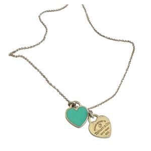 Tiffany and Company Double heart necklace. "Please return to iffany & Co. New York 925" heart with diamond in center. Also a Tiffany Blue heart. Cute pair together on the chain. Return to heart is inscribed "M & Y" on the back.