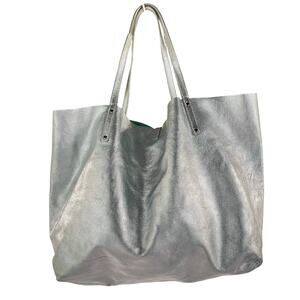Rare Tiffany & Co. Reversible Metallic Silver Leather Tote with Matching Zip Pouch