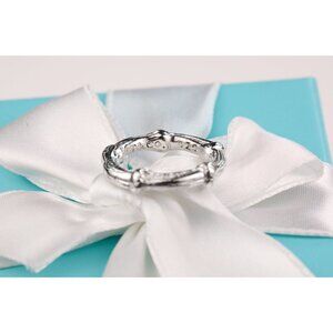 100% Authentic Tiffany & Co. Ring Vintage Bamboo Bone Band Pinky Ring Size 3.5 In excellent condition. Professionally cleaned and polished to shine like new No pouch or box included This is a vintage/retired piece from the Tiffany & Co. catalog Elevate your style with the timeless elegance of the Tiffany & Co. Vintage Bamboo Bone Band Pinky Ring—a stunning piece that blends classic craftsmanship with unique design, crafted from the finest sterling silver. This ring showcases a natural, bamboo-inspired motif with a textured, organic aesthetic that feels both contemporary and rooted in tradition. Whether you're a collector or someone simply looking to invest in a unique piece of jewelry, this ring offers both beauty and sophistication, making it a perfect gift for yourself or a loved one. *Tiffany & Co. hallmarks will vary due to year produced SKU# R014 Size: 3.5