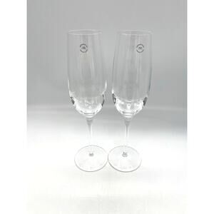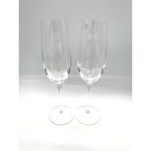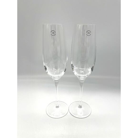 Tiffany & Co Set of 2 Crystal Champagne Flutes Signed Made in Italy 9.5"