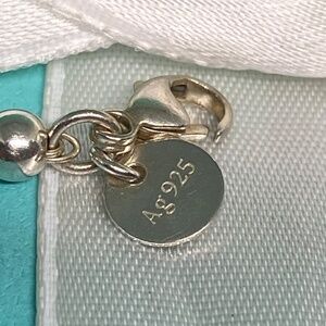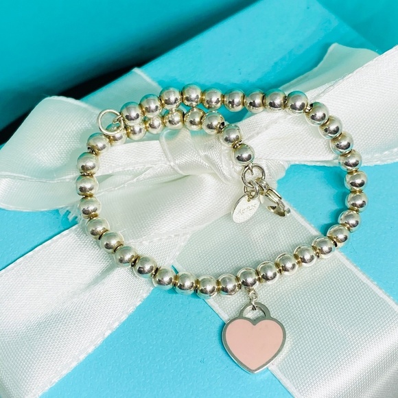 Tiffany Co. Silver 925 Blue Enamel Mini Heart Tag Charm 4mm Bead Ball Bracelet