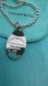 This is a Tiffany & Co. "Return to Tiffany" tag necklace, crafted from sterling silver (marked "925" and "AG 925"). The oval-shaped tag features engraved text "PLEASE RETURN TO TIFFANY & CO. NEW YORK 925" and a distinctive blue enamel splash design at the bottom. It comes with a beaded chain, also in sterling silver, with a lobster clasp and a small "925" tag. The item is presented with Tiffany & Co. packaging, including a blue box and a drawstring pouch. A US quarter is shown for size reference. The necklace is Tiffany however, the 4 mm 18 inch beaded necklace is a generic sterling silver.