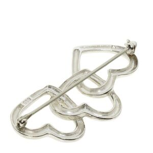 This elegant Tiffany & Co brooch showcases a series of open heart shapes crafted in silver, linked together to form a continuous and delicate pattern. The polished finish enhances its reflective quality, making it a timeless accessory for any occasion.