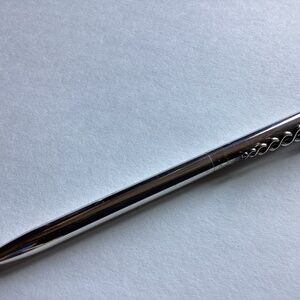 Tiffany & Co Silver Caduceus clip ballpoint pen. The perfect gift for a physician. Recently on the Tiffany website at $300 (not currently available from what I can tell). This pen was in a drawer forever and was tarnished. I polished it up and it looks great. Comes with the original blue fabric bag.