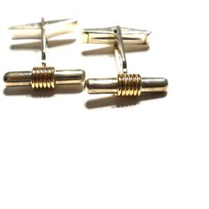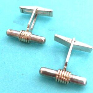 Sterling Silver & 14K Gold Bar Cuff Links