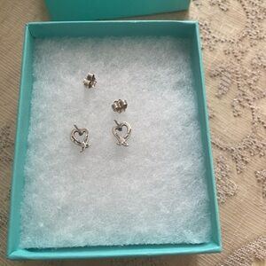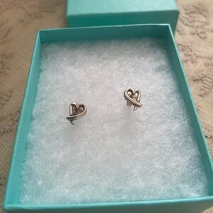 Elegant Tiffany & Co. heart earrings in a stunning silver finish. Perfect for adding a touch of sophistication to any outfit.