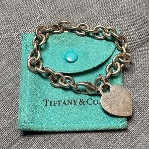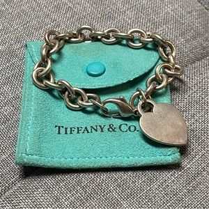 Authentic Tiffany & Company Silver Link Heart Tag Charm Bracelet