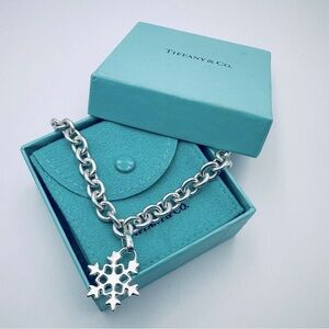 Tiffany & Co. Snowflake Charm Bracelet 7.25” in Sterling Silver with Pouch & Box