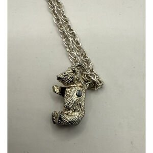 A Tiffany & Co. Sterling Silver Charm Pendant featuring a vintage, articulated (moveable) teddy bear is a highly collectible and charming piece. Tiffany & Co. is renowned for its timeless sterling silver jewelry, and a moveable teddy bear design adds a playful yet sophisticated touch.