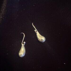 Reminiscent of a solitary raindrop or a shining bead of morning dew. Drop earrings in Sterling Silver, for pierced ears. Teardrops, 12 mm long each.
