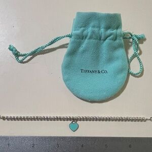 Tiffany & Co. Sterling Silver Blue Heart Tag Enamel Beaded Bracelet