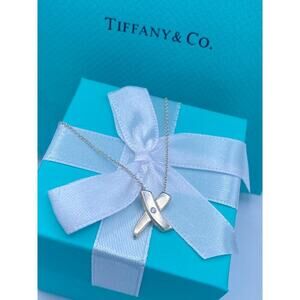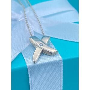 Add a touch of timeless elegance to your jewelry collection with this authentic Tiffany & Co. necklace. This stunning piece features a beautifully crafted sterling silver "X" pendant, accented with a dazzling diamond at the center. Perfect for everyday wear or special occasions, this necklace exudes sophistication and style.