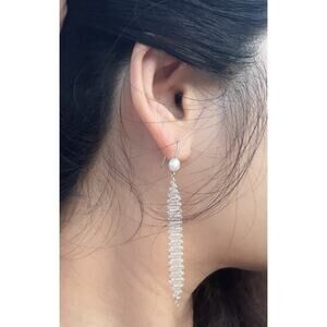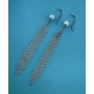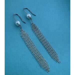 Tiffany Co Sterling Silver Drop Dangle Mesh Scarf Hook Earrings W/ Pearls