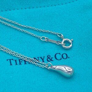 Elegant and authentic Tiffany & Co. Elsa Peretti teardrop necklace crafted in sterling silver. Known for its minimalist and timeless design, this piece features a delicate teardrop pendant suspended on a fine 16-inch chain — perfect for everyday elegance or gifting.