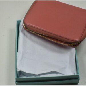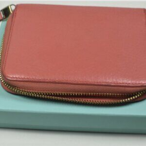 Tiffany & Co Tangerine & Blue Grain Leather Zippy Wallet w/ Box & Ribbon Etc VGC