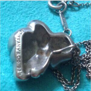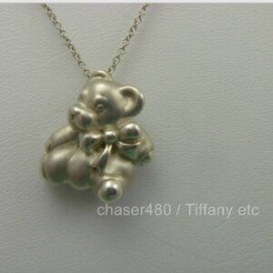 Tiffany & Co Teddy Bear & Bow Ribbon Pendant Chain Necklace Sterling Silver RARE