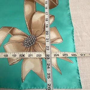 Tiffany & Co 100% silk scarf, featuring a design with ribbons and bows on a iconic Tiffany Blue background