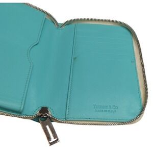 Tiffany & Co. Color Block Zip Around Wallet Off- White/Blue