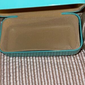 Oblong storage box in iconic Tiffany turquoise. Bottom has sticker residue. Minor signs of wear. Perfect for storing your glasses or treasures. Approx 6.5x2.5x2.25 Please see pictures for best description. I want you to be happy with your purchase so please ask questions. Smoke Free/Dog Friendly Home