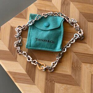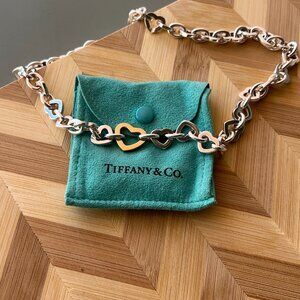 Tiffany & Co. Sterling Silver & 18k Gold 750 Heart Chain Link Necklace