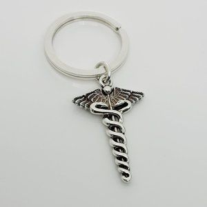 Tiffany & Co Vintage Doctor's Caduceus Key Ring Chain in Sterling Silver