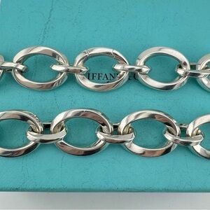 The heavy silver links create a symphony of glamour around your neck, turning every moment into a celebration. In a world of trends, this necklace stands as a testament to enduring sophistication. So, channel your inner Holly Golightly, adorn yourself with Tiffany's magic, and let the heavy silver links turn everyday into a stylish escapade. After all, elegance is never out of fashion, and this necklace ensures you're always in vogue.