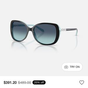 Elegant Tiffany & Co. sunglasses. Features a sleek black frame. Teal lenses add a chic touch.new with box tag and everything