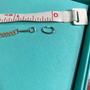 The bracelet measures 6 inches and is considered a small. I am going to include A split ring loop that can be attached to add about an extra third of an inch. This will come in a pre-love Tiffany box and pouch as pictured