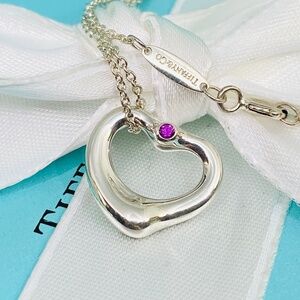 Tiffany & Co pink sapphire open heart necklace 925 Elsa Peretti MSRP $850