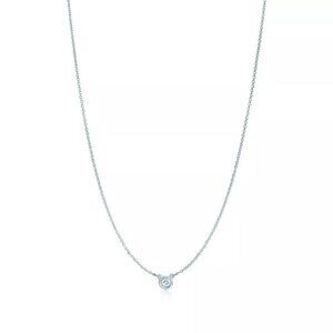 Sterling silver with a bezel-set round brilliant diamond by Tiffany & Co Elsa Peretti. Diamonds by the Yard® Single Diamond Pendant in Silver. On a sterling silver chain.