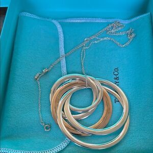Tiffany @ Co Tri-Color Interlocking Ring Necklace impeccable condition dust bag