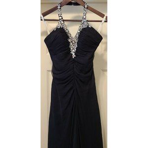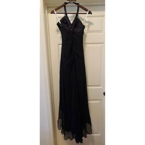 Tiffany Designs Black Halter Rhinestone Ruched Formal Dress Size 4 High-Low Hem