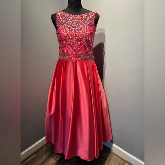 Tiffany Designs pageant Gown Youth Size 16 Lipstick Color Beaded Bodice 13472