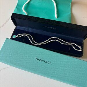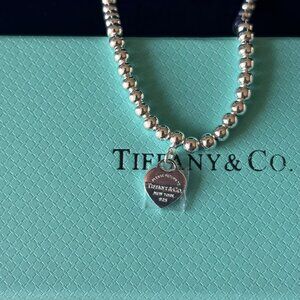 This Tiffany necklace, featuring an iconic charm, adds an elegant touch to any ensemble. Brand new, unused, and includes the original box.