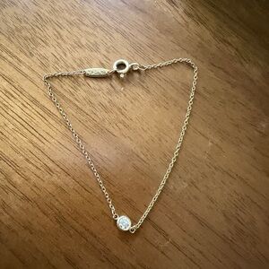 Tiffany Elsa Peretti single diamond bracelet. 18k yellow gold with a bezel-set round brilliant diamond. Please be noted that I have shortened the length to 5.6 inch for a less loose fit. For your reference I wear Cartier Love bracelet size 16.