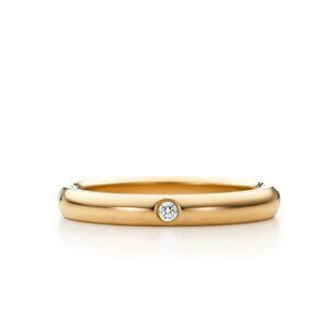 Designed for stacking, elegant on its own. Band ring with a diamond in 18k gold. Original designs copyrighted by Elsa Peretti.