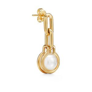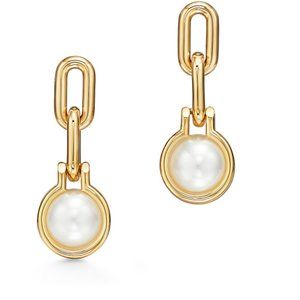 Tiffany HardWear is elegantly subversive and captures the spirit of the women of New York City. Dressed up or down, these earrings feature bold 18k gold links and refined pearls.