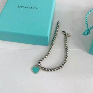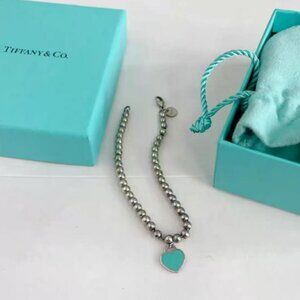 Tiffany Heart-Shaped Blue Enamel Silver Bracelet