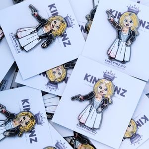• Black nickel plated brass pin with hard enamel with movable hinged arms