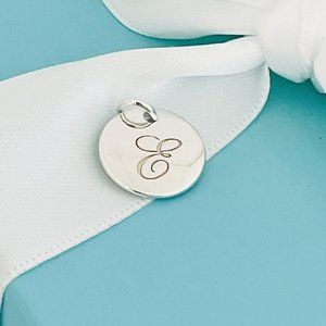 Tiffany Letter E Alphabet Notes Disc Initial Round Circle Charm Pendant