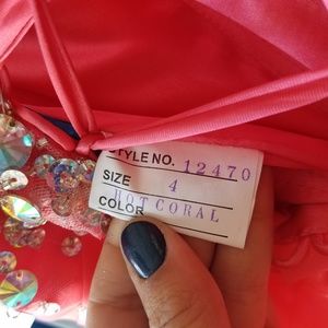 Tiffany Studio-C size 4 prom dress. Has a corset backs, so size is flexible. Dress is altered to a 5ft 2-3in height. Only worn one time! In great, clean condition.