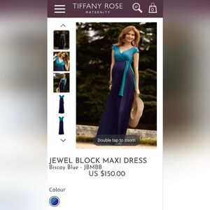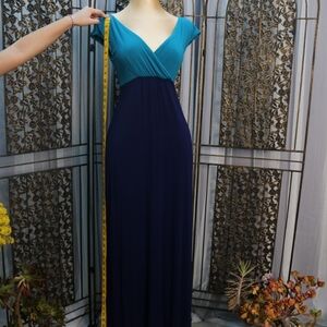 Tiffany Rose Jewel Block, Elegant Comfy Maternity Maxi Dress, Biscay Blue