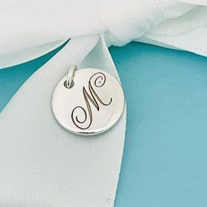 Tiffany Silver Letter M Alphabet Initial Round Circle Notes Charm Pendant