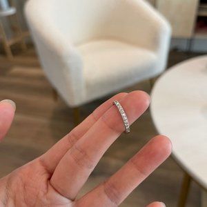 Band ring in platinum with a half circle of round brilliant diamonds. Carat total weight .17.