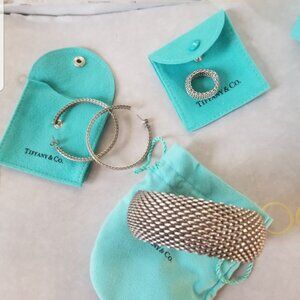 Vintage Tiffany Somerset full set. Silver. Thick cuff bracelet, large hoop earrings and ring. Selling as a set only. Preloved but in excellent condition.